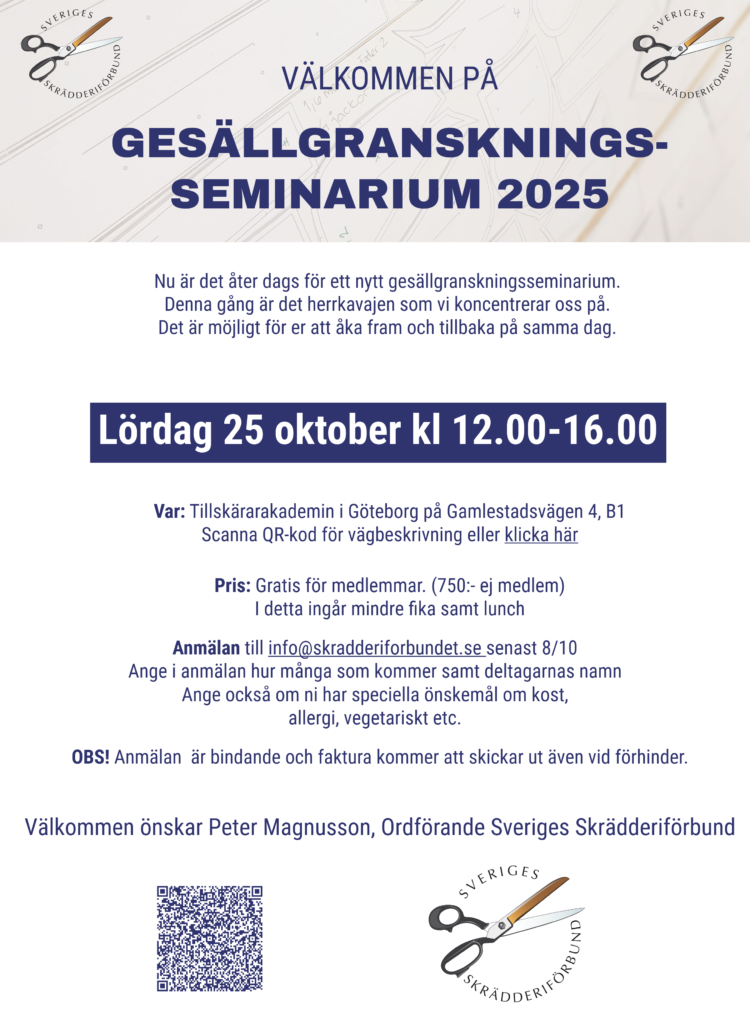 Anmäl dig före den 8/10 genom att skicka ett mejl till info@skradderiforbundet.se