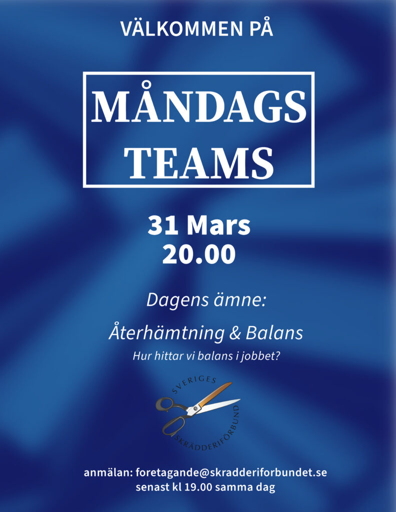 Måndagen den 31 mars kl. 20.00 är det “Måndags-teams”